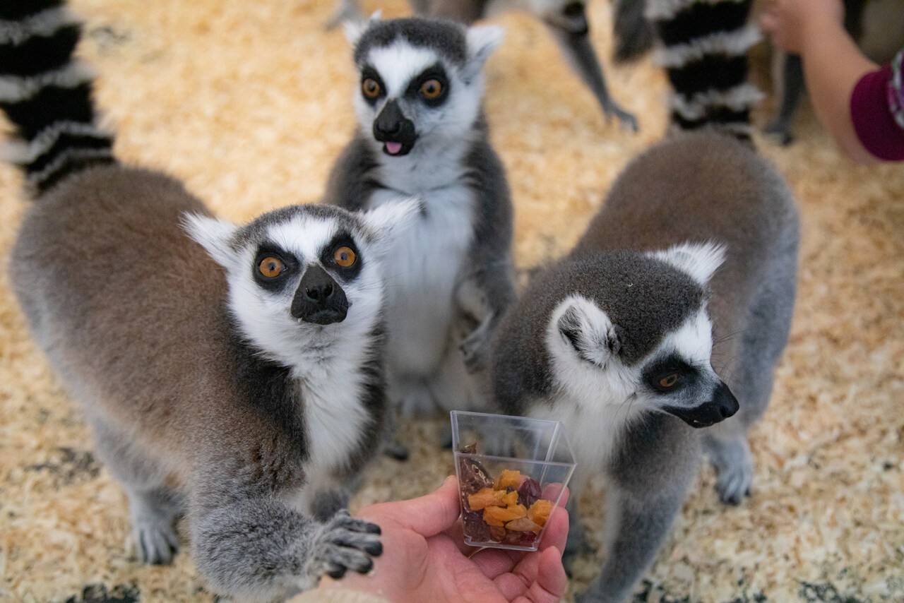 Egzotyczni mieszkańcy zachwycą swoim wyglądem, zachowaniami i ciekawostkami ze swojego życia. Wśród nich zobaczysz także stadko lemurów katta z Madagaskaru – zwierzęta znane z charakterystycznych, pasiastych ogonów i energicznych zachowań, które często żyją w grupach i wykazują silne więzi społeczne. To spotkania, które na długo zostają w pamięci.